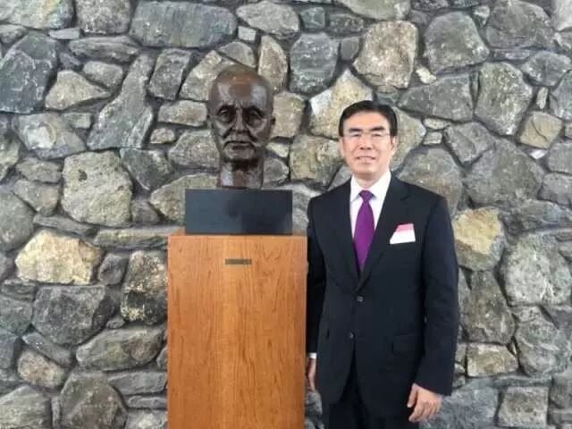 魏少军教授与IBM创始人Thomas J. Watson塑像合影